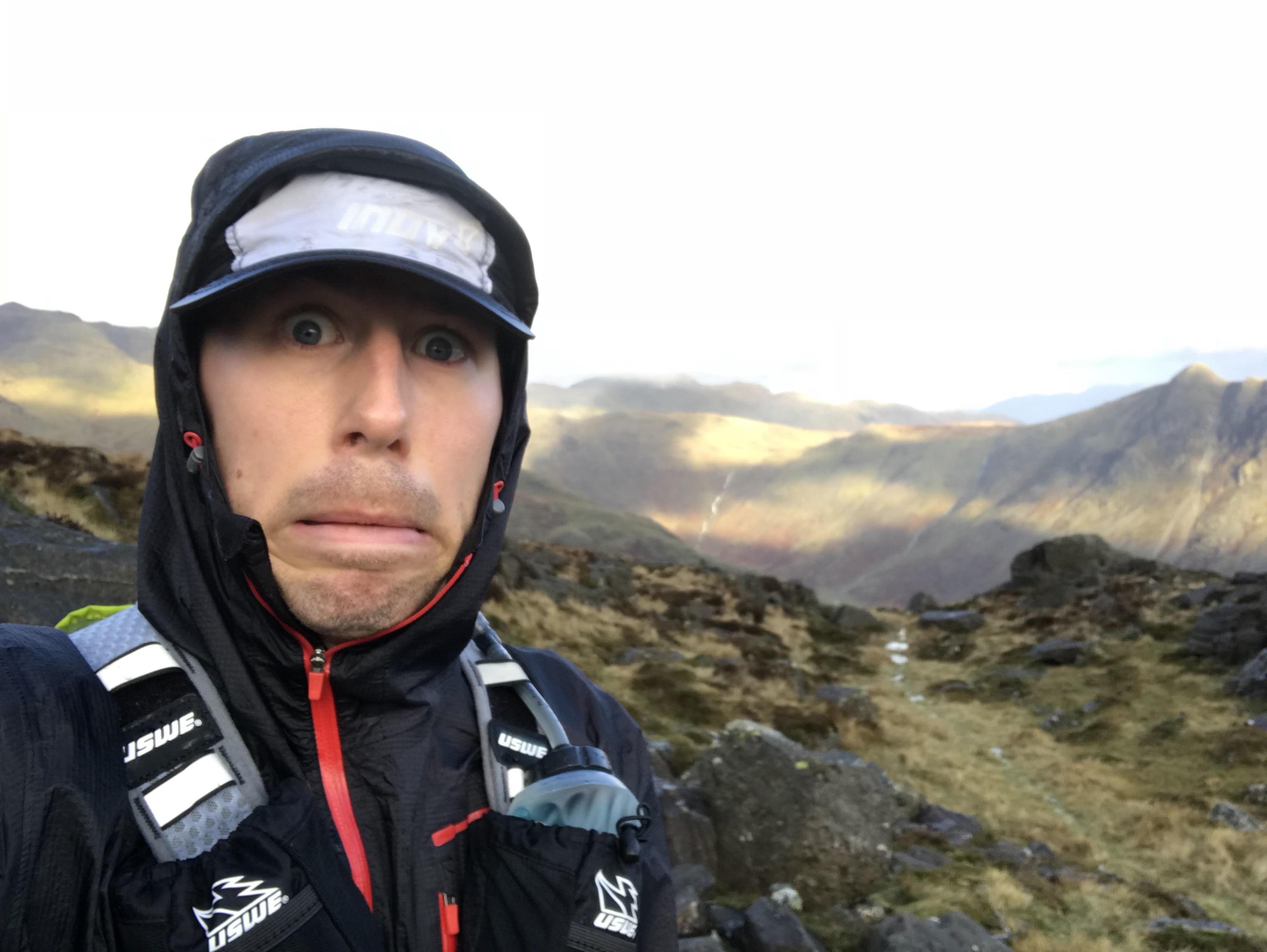 Descending, I quickly found pace and a smile back across my wind battered face. Until I met the very same slick path that had hampered progress earlier.